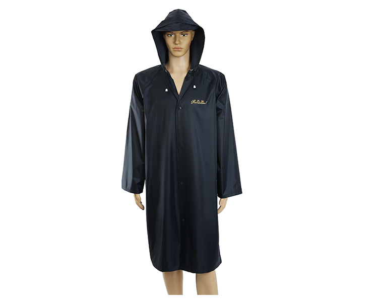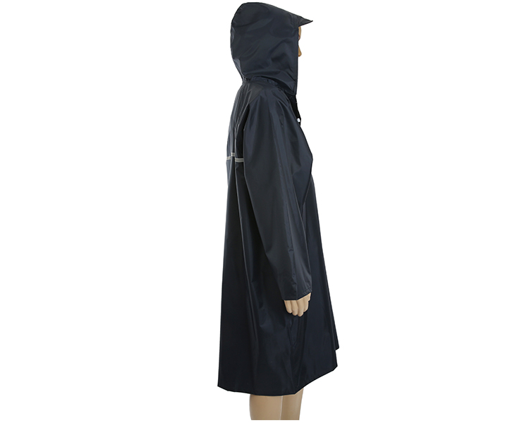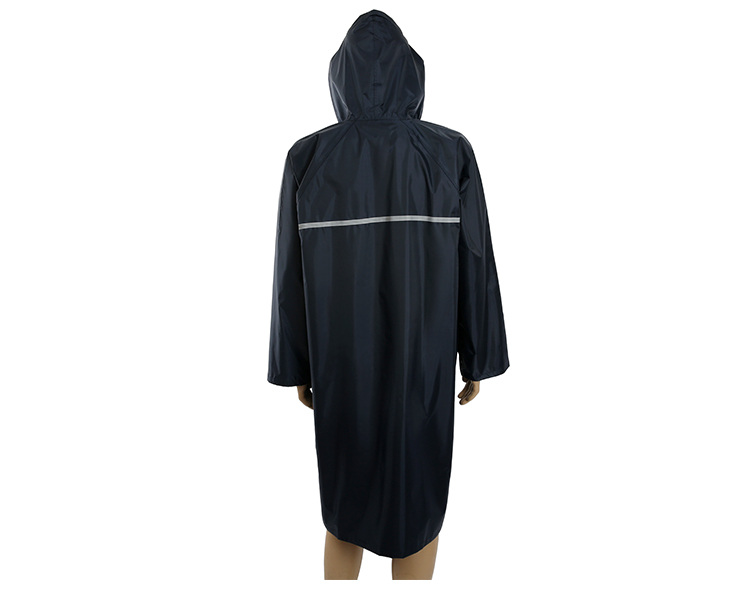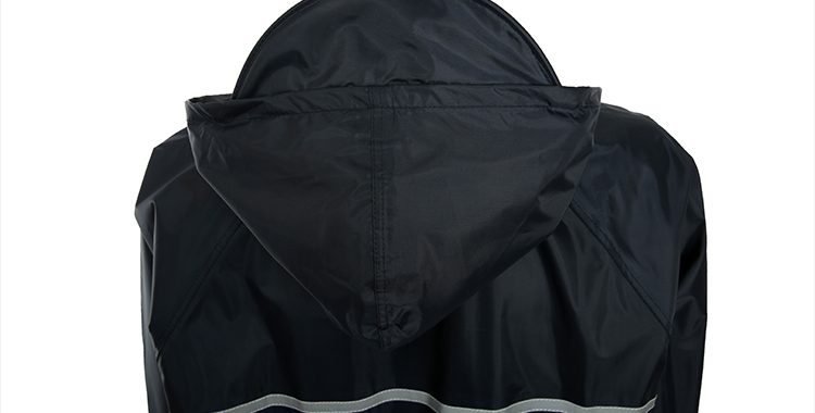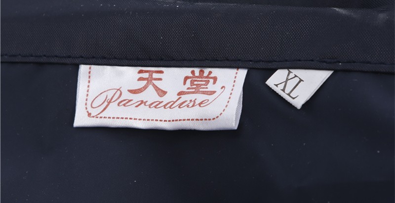 雨衣下方部位缝有商标 尺寸标识