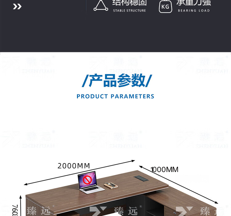 商品名称:臻远 ZY4052804 办公桌 简约大班台办公主管桌2米含副柜推柜2000*1000*760mm