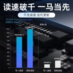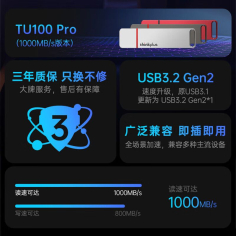 联想(LENOVO)TU100Pro U盘 128GB移动固态U盘1000Mb/s USB3.2高速传输大容量闪存优盘灰色 U盘/存储卡