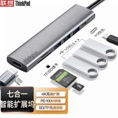 联想(LENOVO)LC07-H 集线器 Type-C扩展坞 USB-C转HDMI PD快充 SD/TF卡 苹华果为笔记本拓展坞