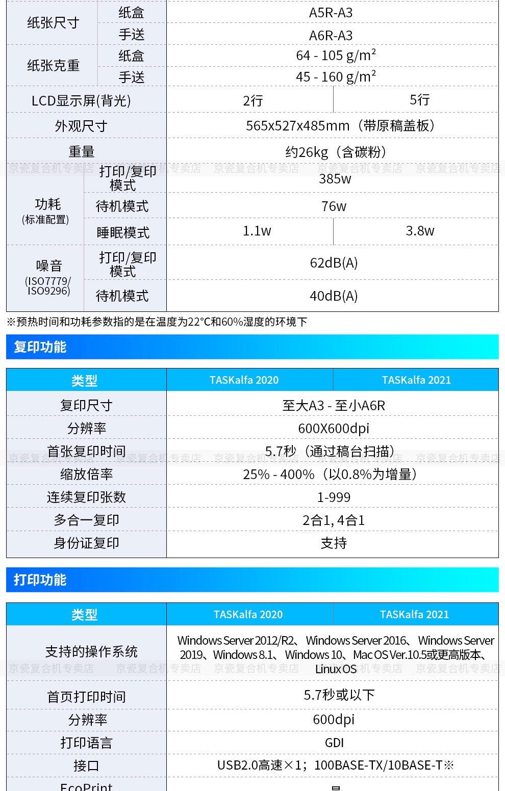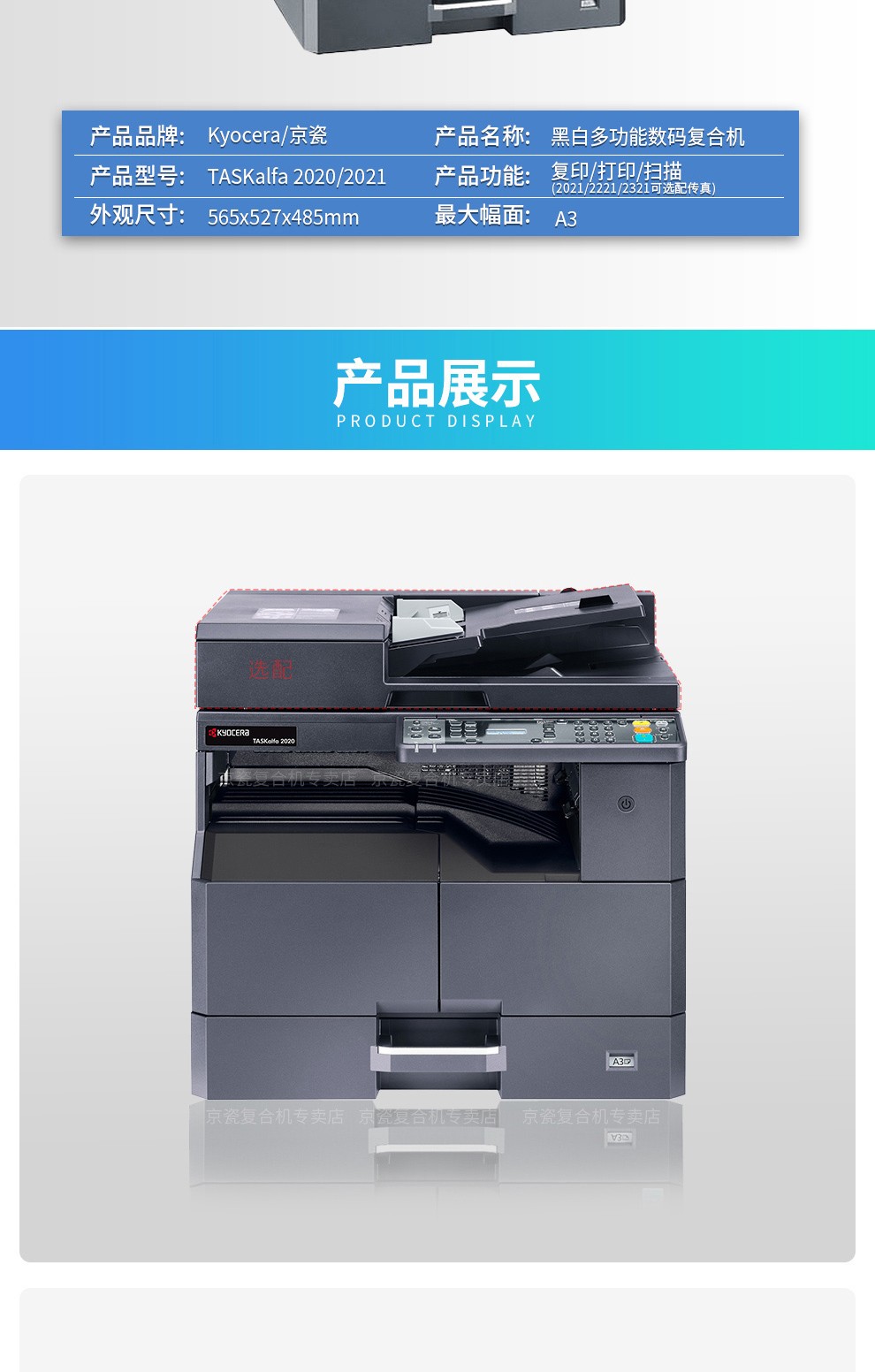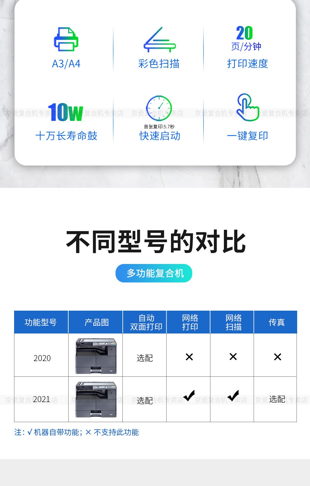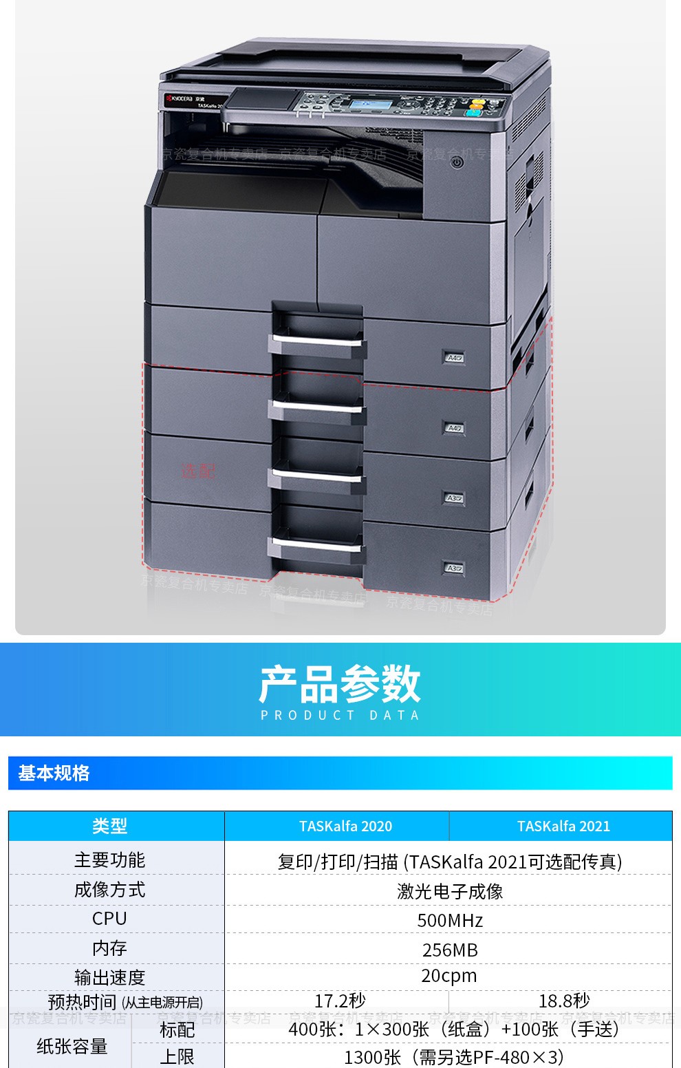 商品名称:京瓷(Kyocera)2020 复印机 2020主机+双面器(自动双面打印)单层纸盒 多功能一体 1台