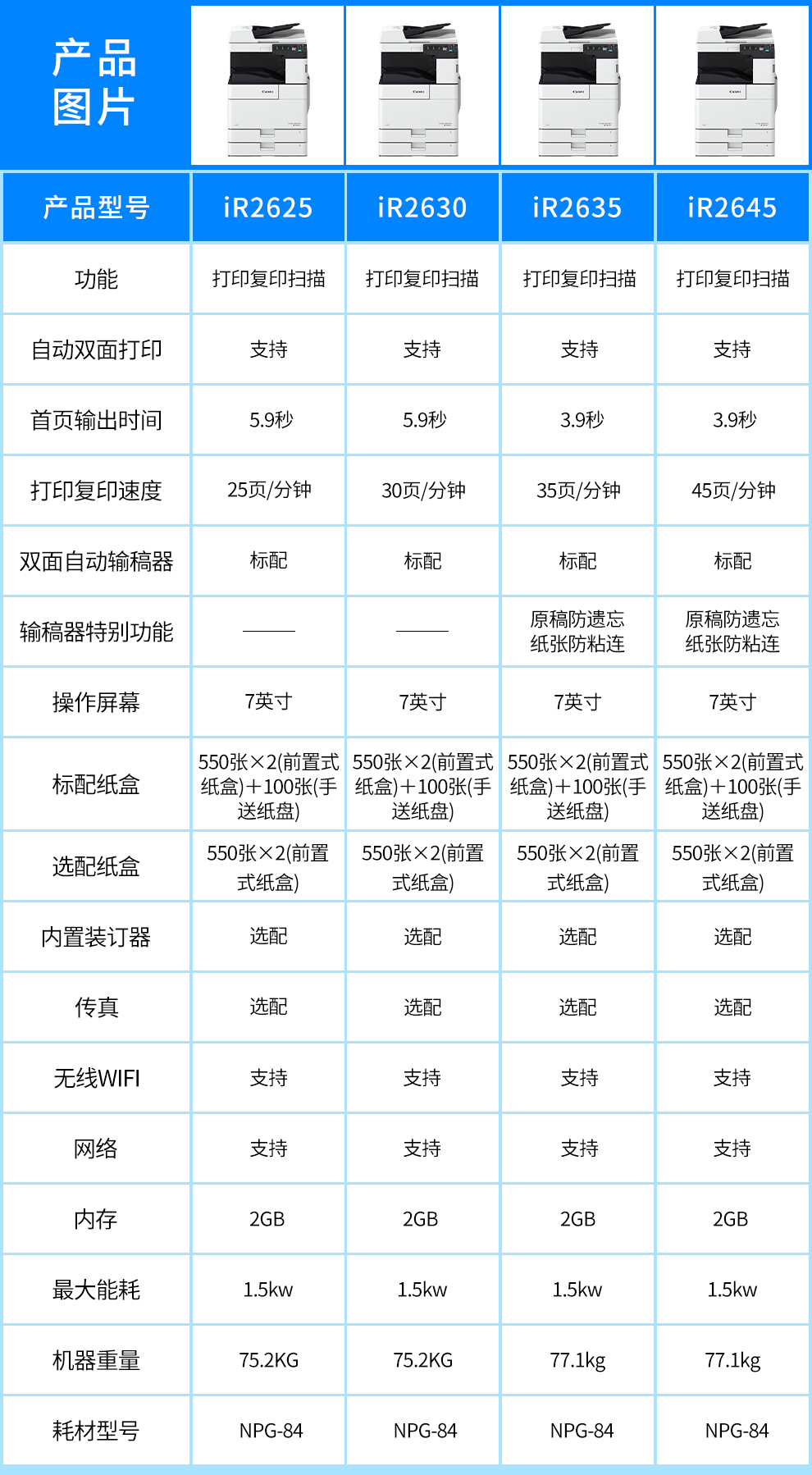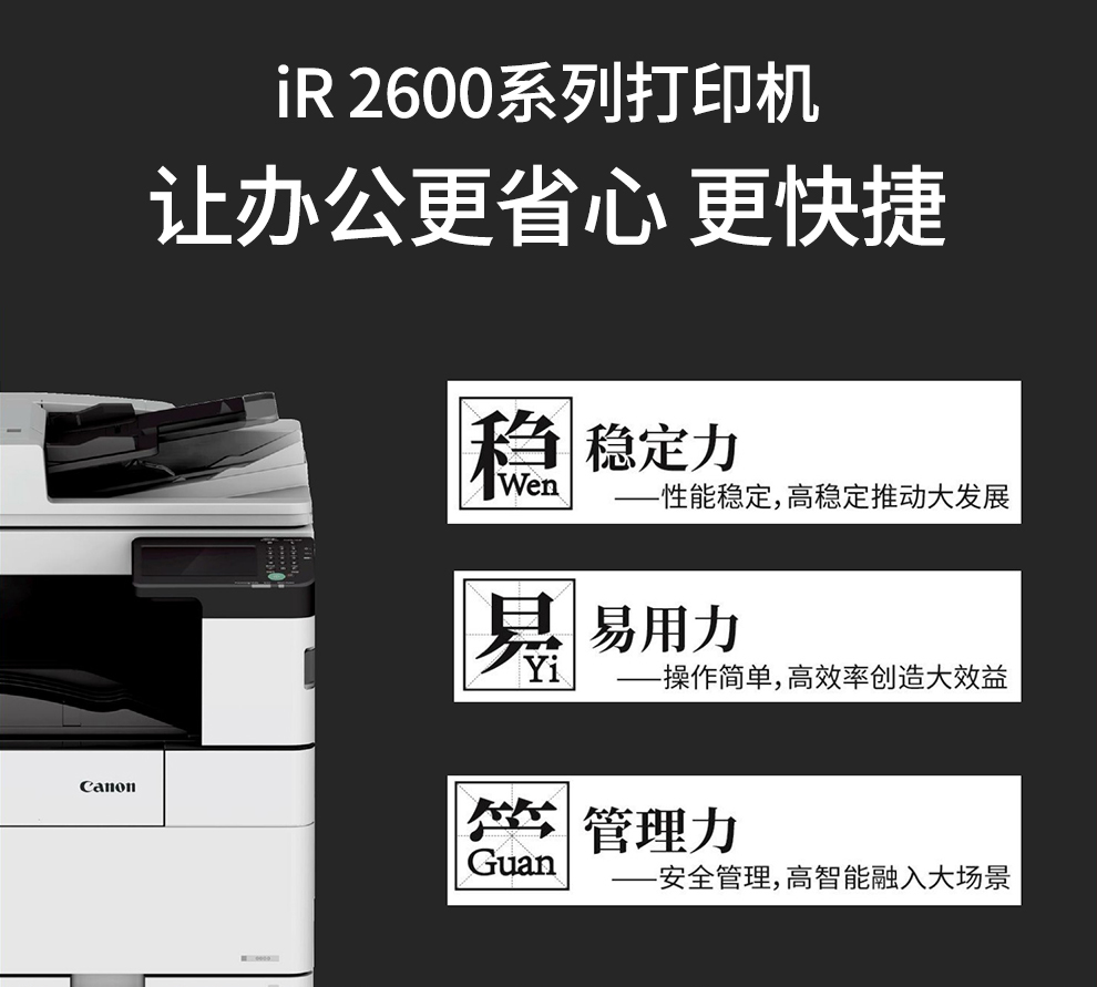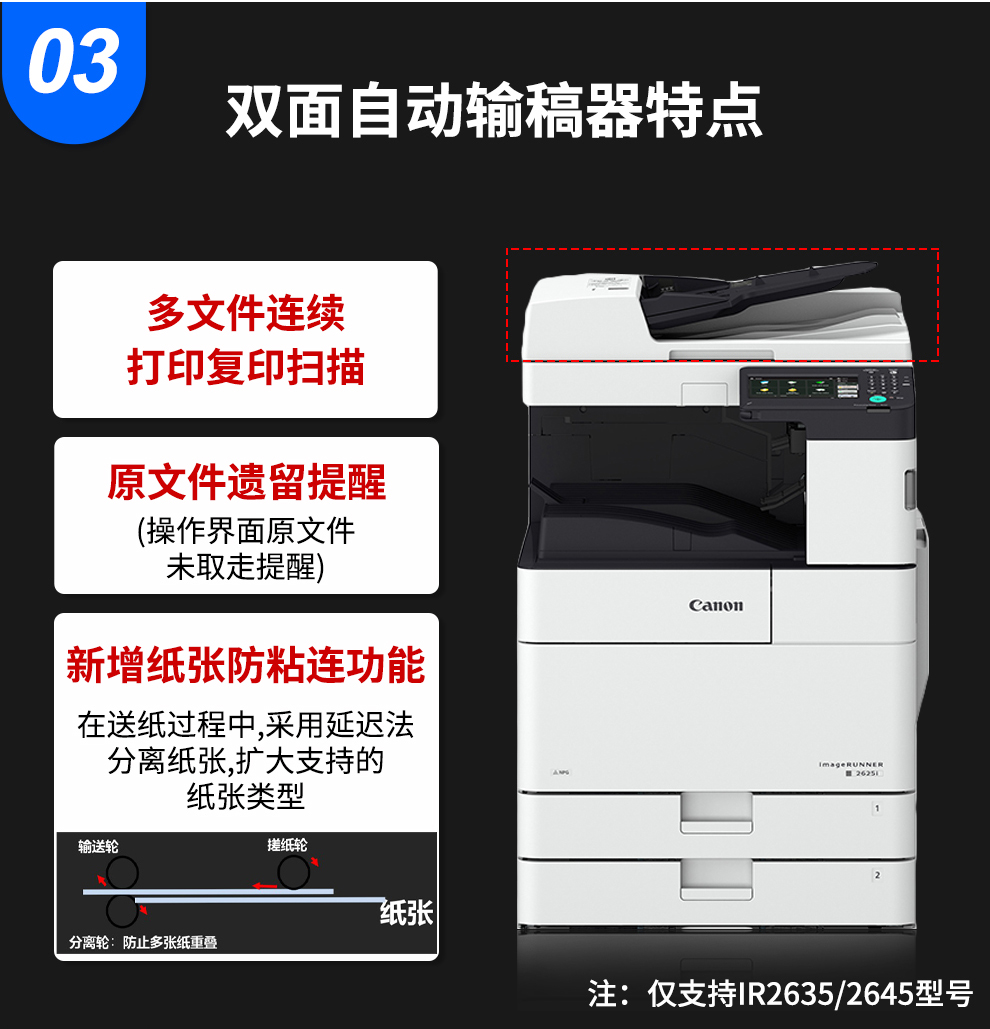 商品名称:佳能(Canon)iR2630 多功能一体机 A3数码复合机一体机输稿器(双面打印/复印/扫描) 主机+输稿器+四纸盒 1台