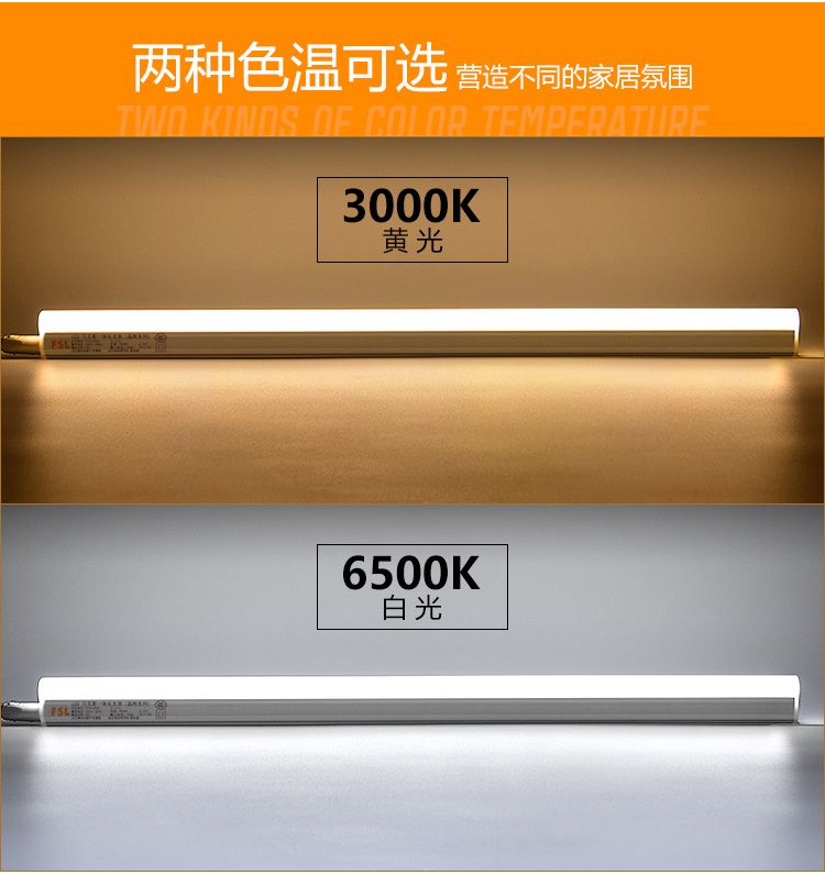商品名称:佛山照明(FSL)T5 LED日光灯 灯管 T5支架一体化套装1米12W暖白光3000K 1只装