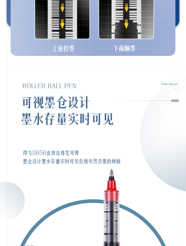 商品名称:得力(deli)S656 书写用笔类用具 直液笔走珠签字笔中性笔0.5mm子弹头红色12支/盒