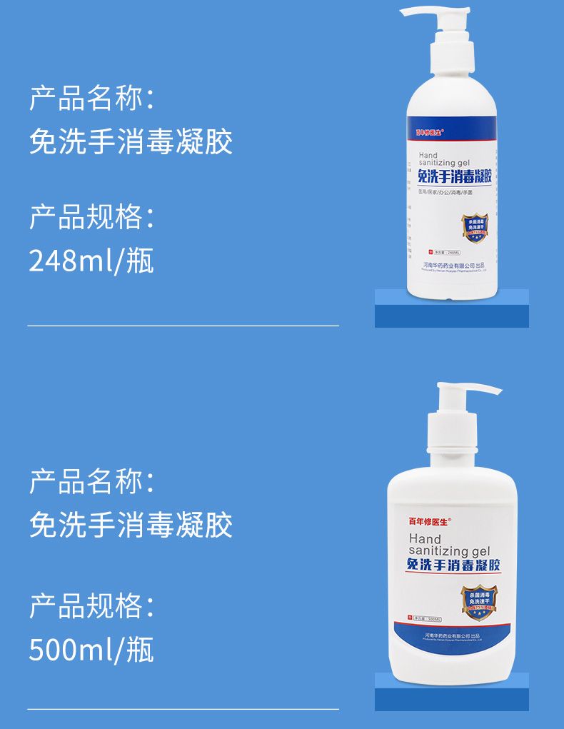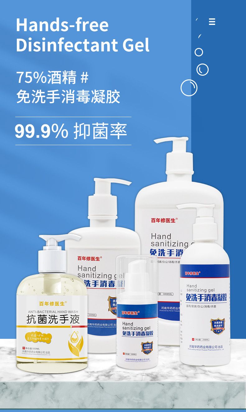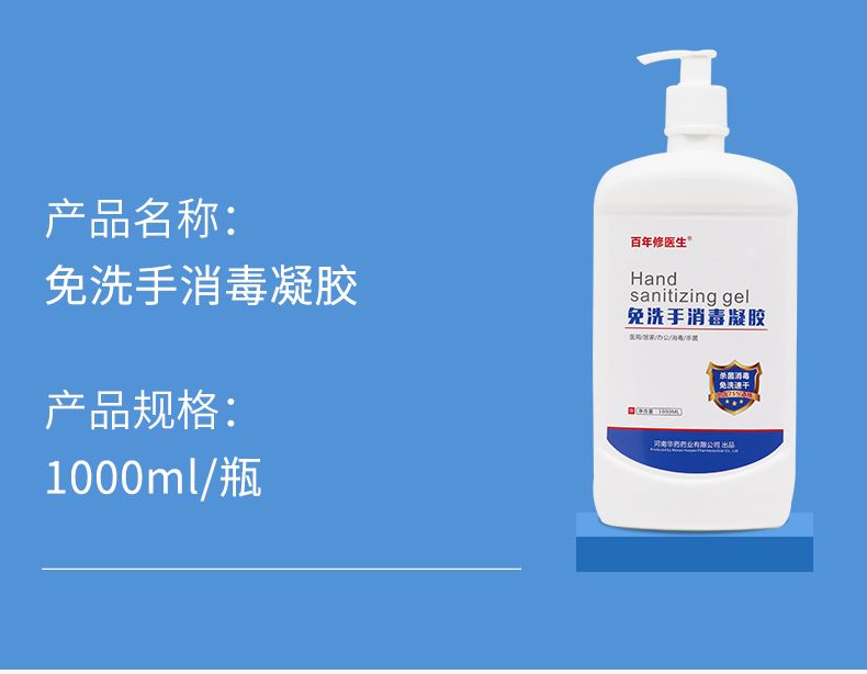 商品名称:百年修医生 BNXYS-1065 75%酒精免洗手消毒凝胶杀菌消毒免洗洗手液 抑菌凝胶 500ml方瓶 30瓶/件 多用途清洁剂 1瓶