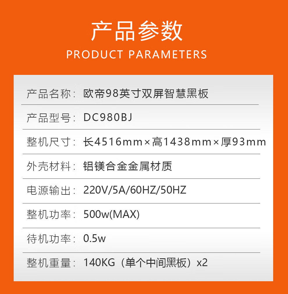 商品名称:欧帝(ODIN) DC980BJ 触控一体机 98英寸双屏智慧黑板智能触控一体机