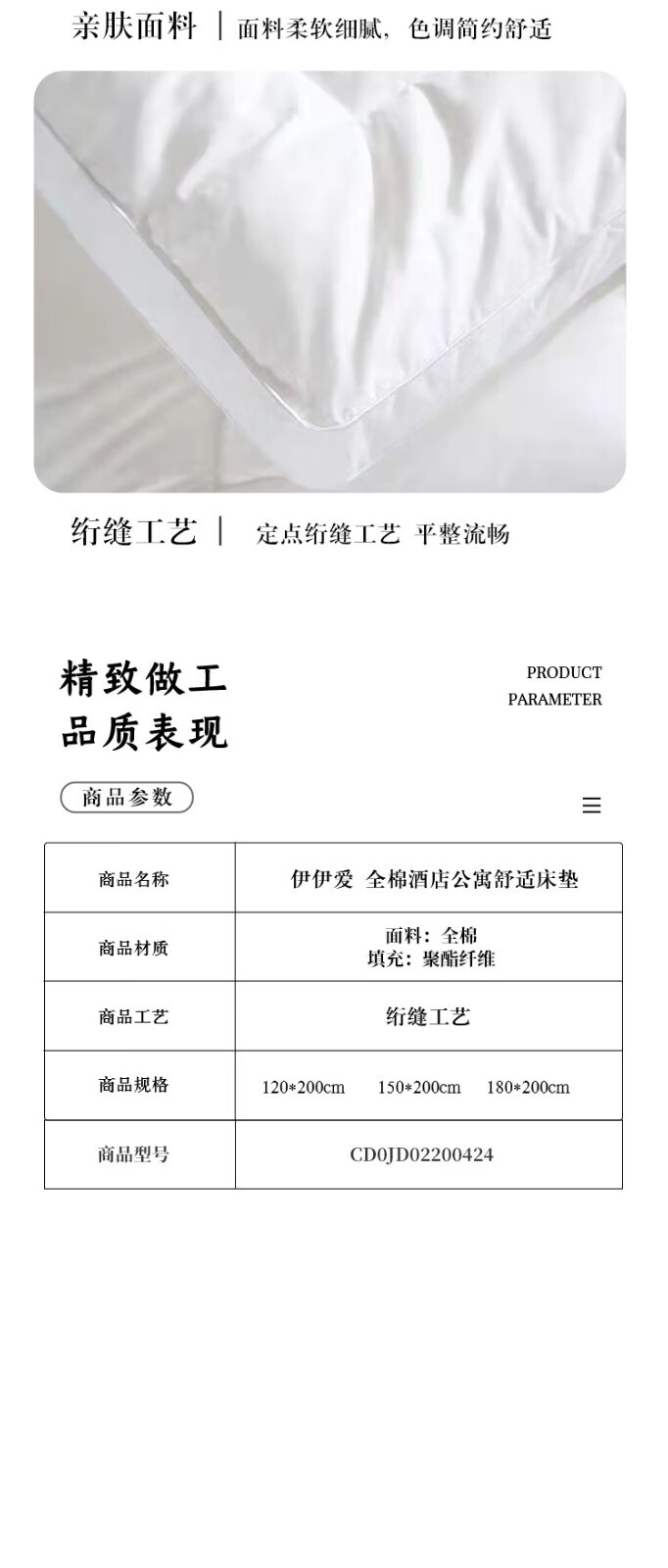 商品名称:伊伊爱 CD0JD02200424 床垫 全棉舒适床垫150*200cm(个) 白色 150*200cm