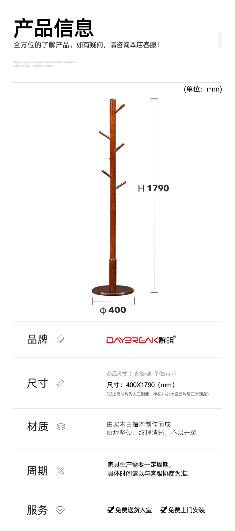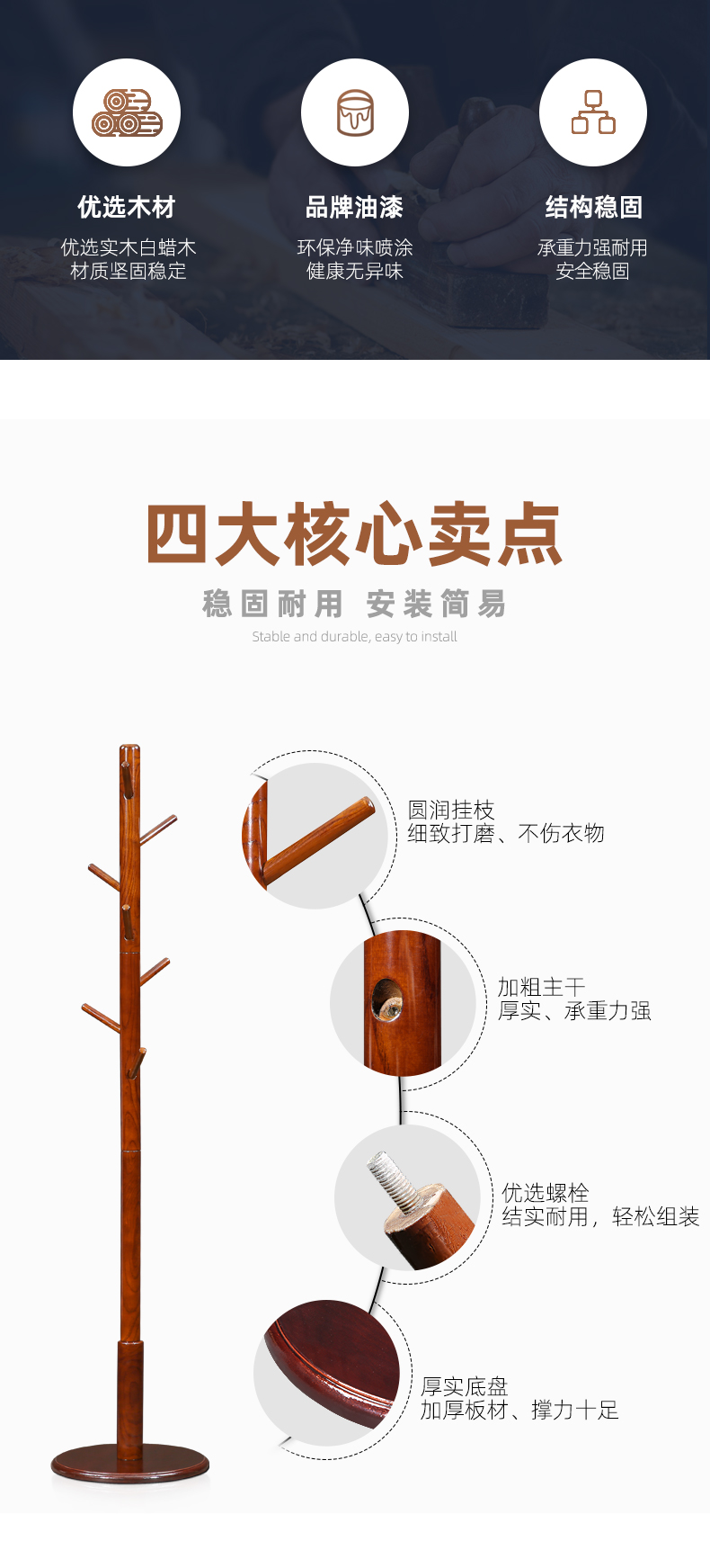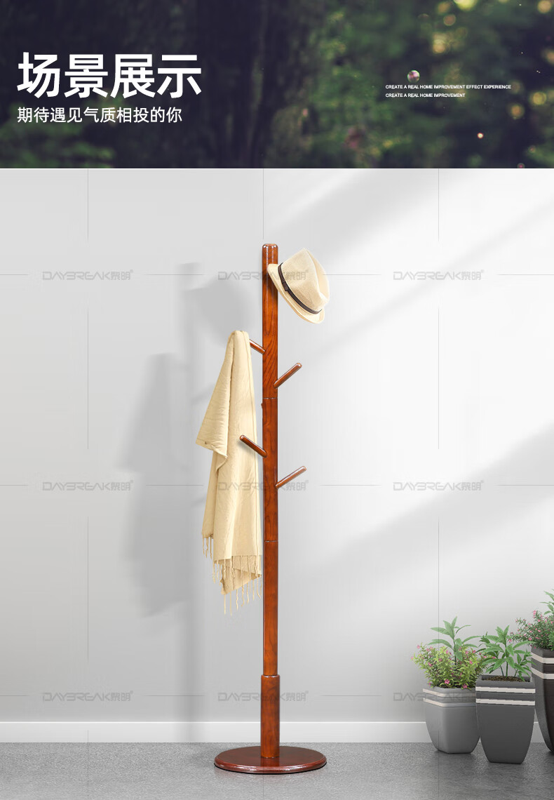 商品名称:黎明 JLYM01 衣架 衣帽架 卧室创意落地衣架 实木挂衣架衣服架立式简易晒衣置衣架胡桃色圆盘底
