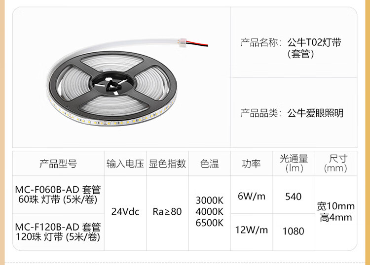 商品名称:公牛(BULL)T02 LED灯带灯条客厅吊顶暗槽 低压灯带(套管) 60珠/米 6瓦3000K暖白光 5米组合装