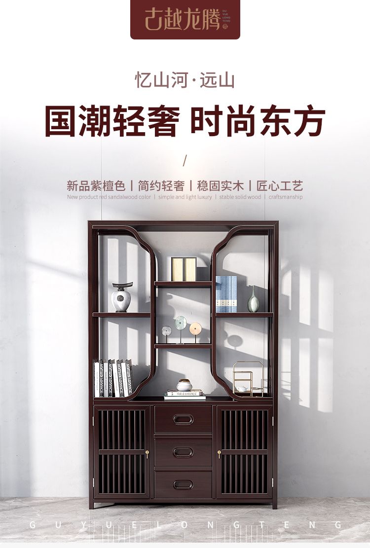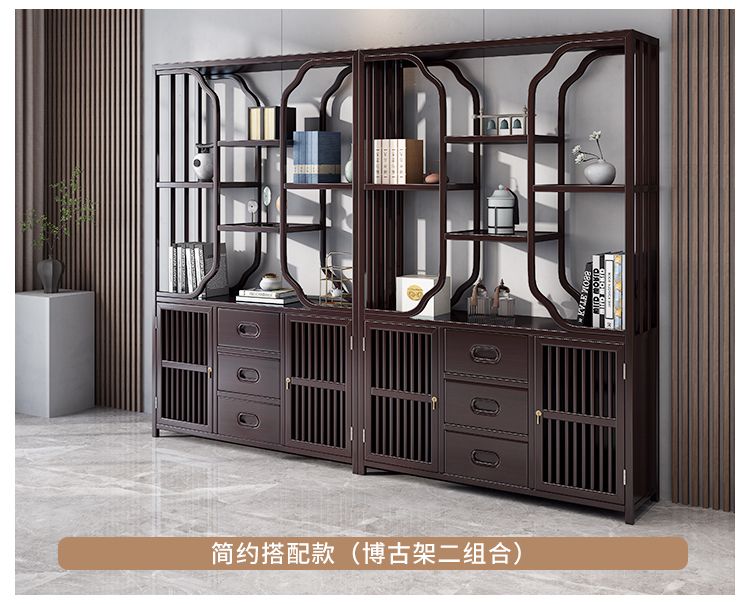 商品名称:古越龙腾 新中式博古架实木书架多层置物收纳落地书房展示储物柜隔断客厅 【远山】1.3米博古架单个
