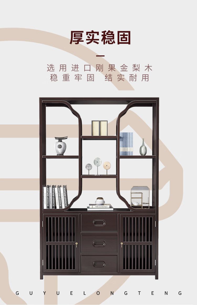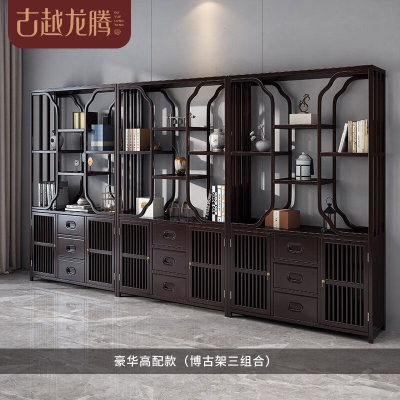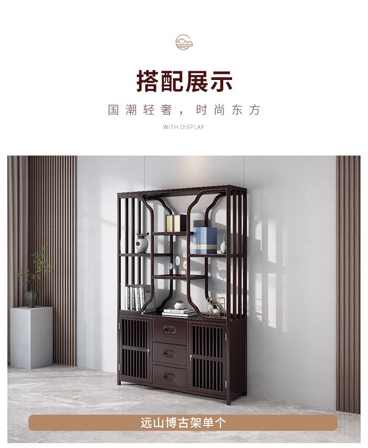 商品名称:古越龙腾 新中式博古架实木书架多层置物收纳落地书房展示储物柜隔断客厅 【远山】1.3米博古架二组合