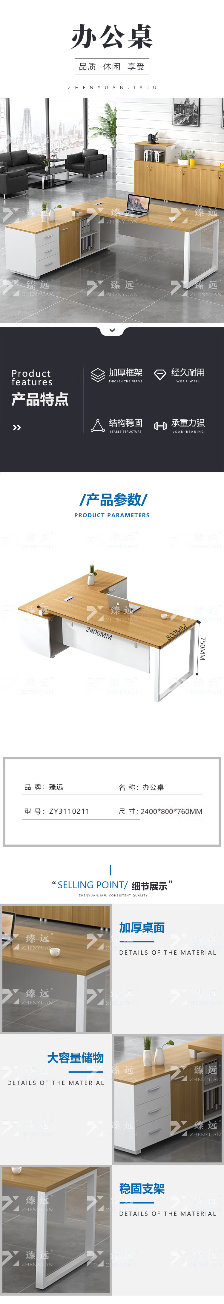 商品名称:臻远 ZY3110211 办公桌 简约钢木办公桌主管桌写字台2.4米2400*800*760mm