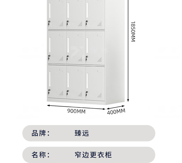 商品名称:臻远 ZY-GYGC-18 更衣柜 拆装更衣柜窄边储物柜纯白色十二门900*400*1850mm
