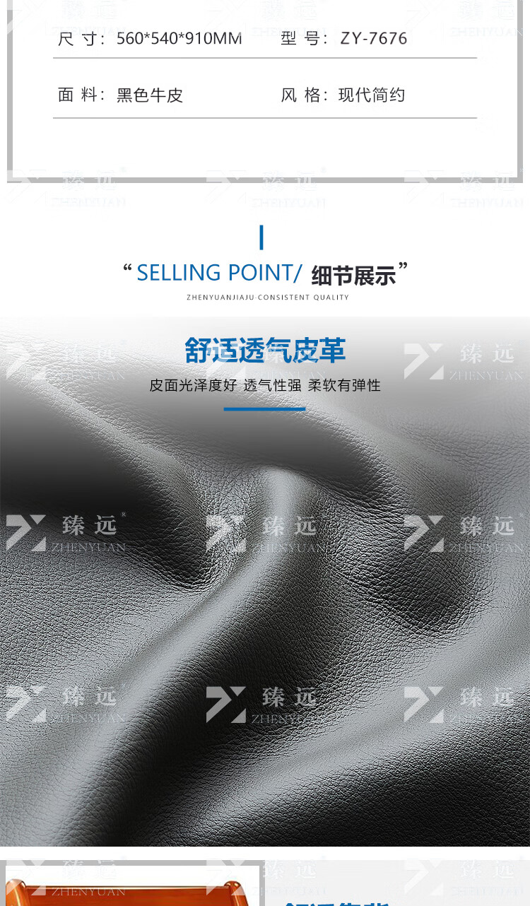 商品名称:臻远 ZY-7676 会议椅 办公会议皮椅电脑椅黑色牛皮560*540*910mm