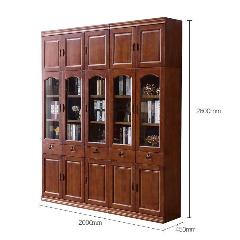 商品名称:臻远 ZY-ZGA-05 书柜 玻璃门实木新中式书橱落地靠墙五门加顶柜2.6米2000*450*2600mm