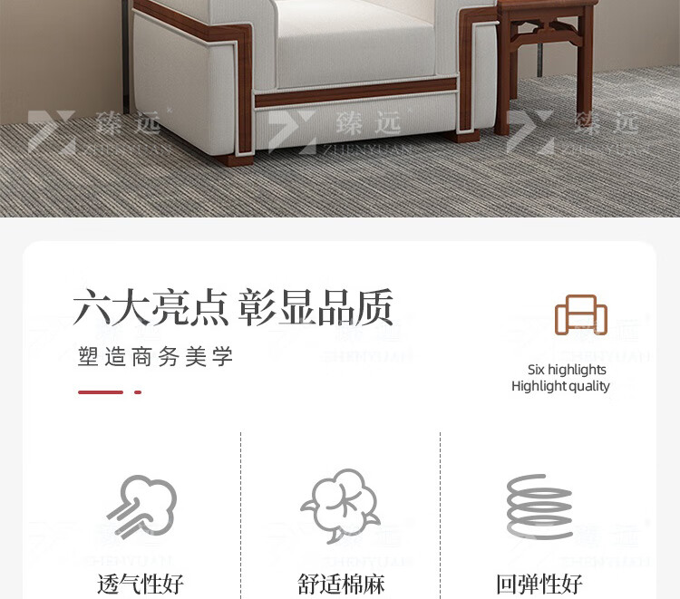 商品名称:臻远 ZYJJ-80231 单人沙发 办公沙发会议沙发布艺会议沙发单人位1100*930*900mm
