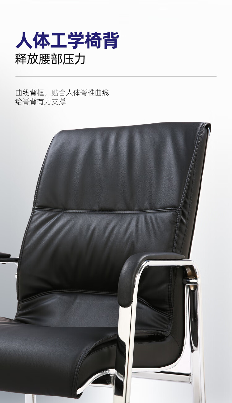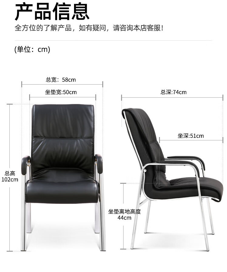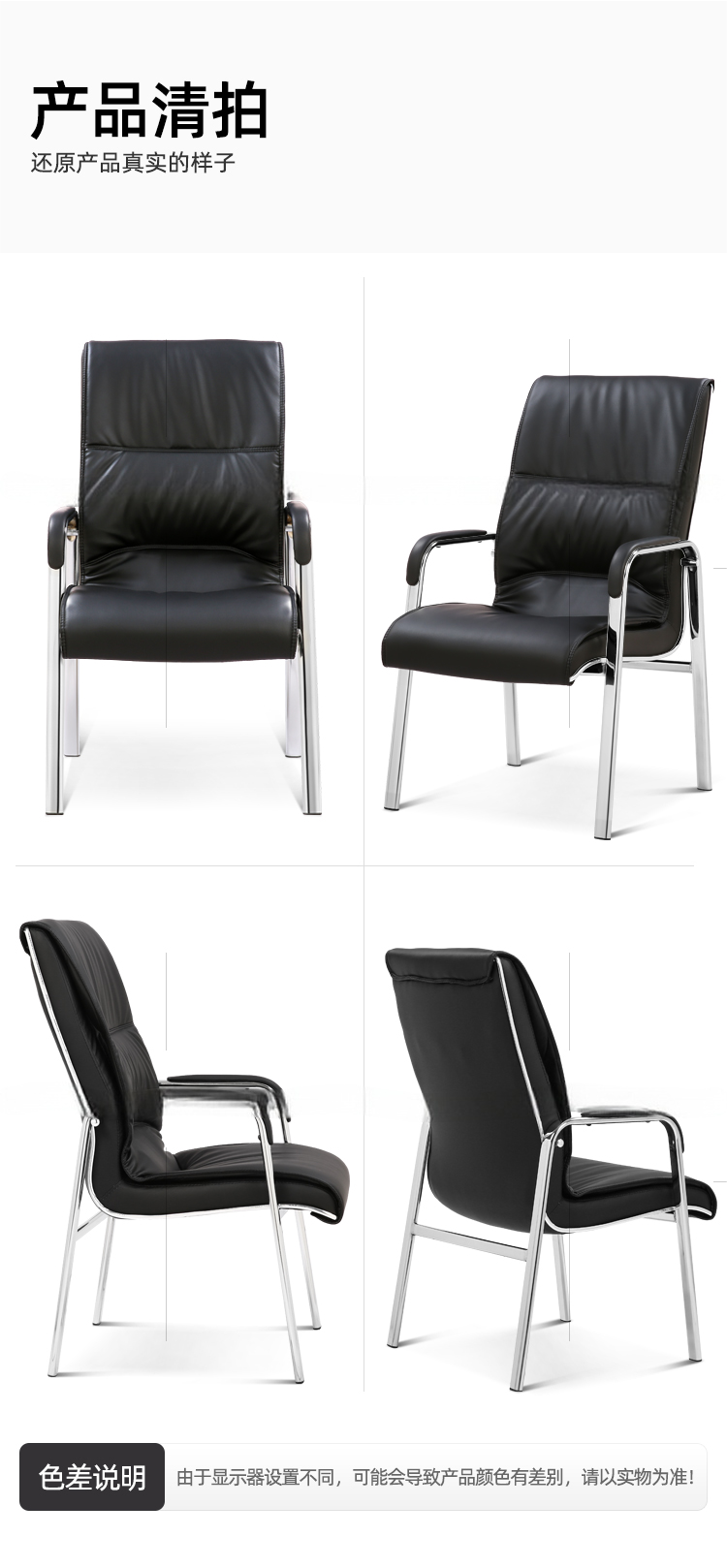 商品名称:臻远 ZY-JDN06 桌前椅 办公电脑椅会议职员四脚钢架椅西皮黑色580*740*1020mm