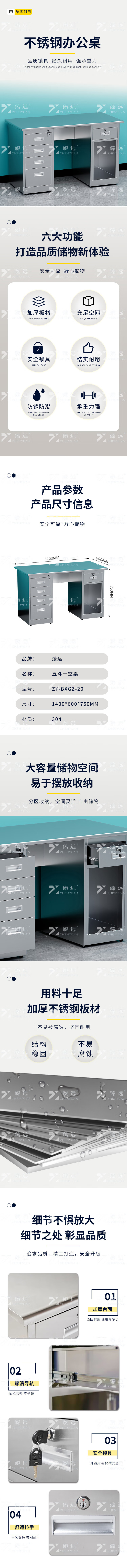 商品名称:臻远 ZY-BXGZ-20 工作台操作台五斗一空桌304材质1.4米1400*600*750mm