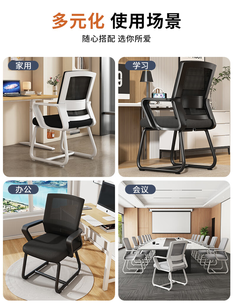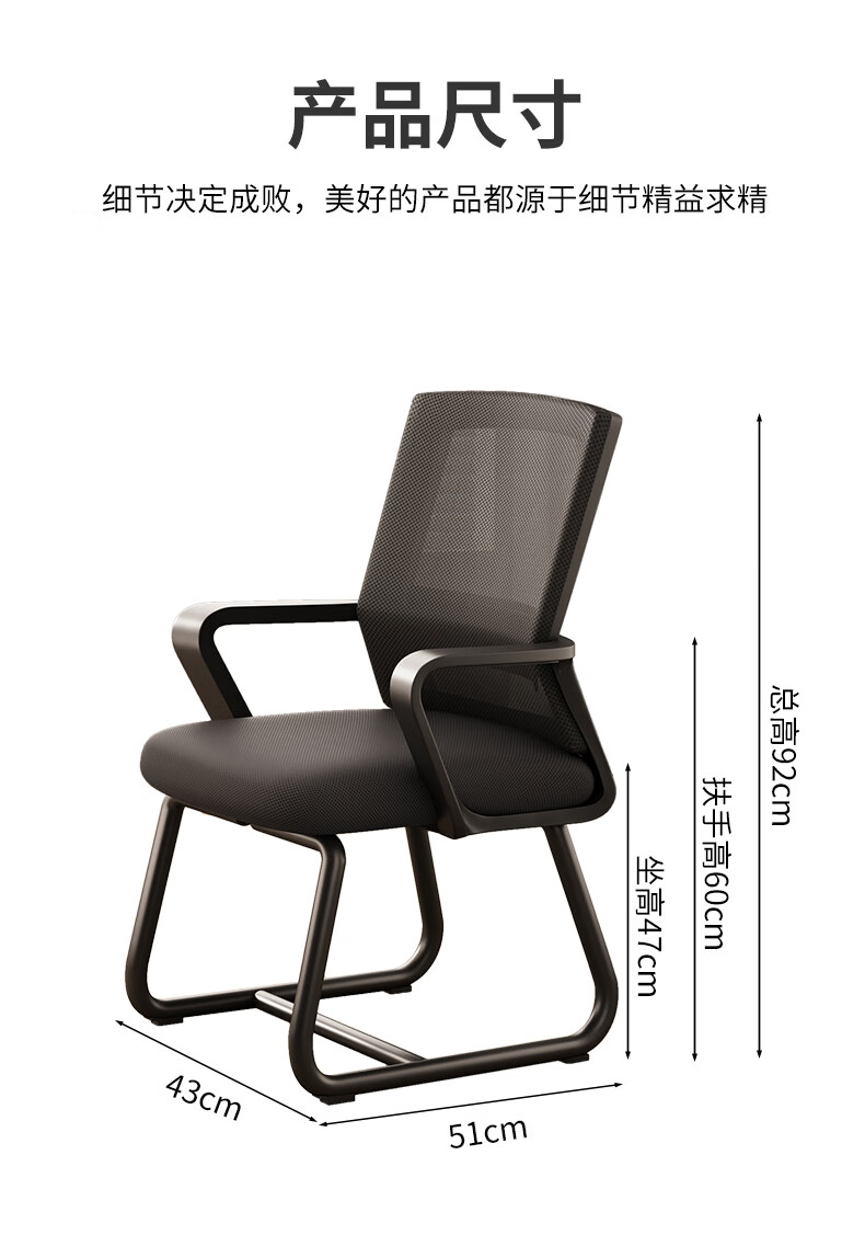 商品名称:臻远 ZY-THBP162 会议椅 会议办公学习椅靠背椅弓形椅人体工学510*430*920mm