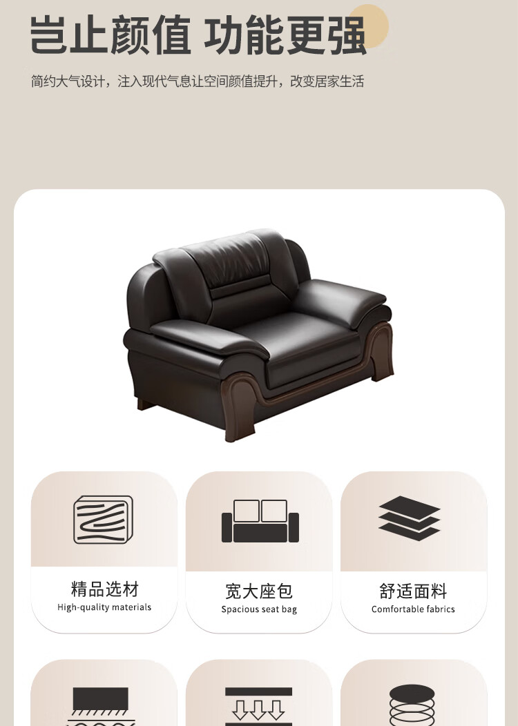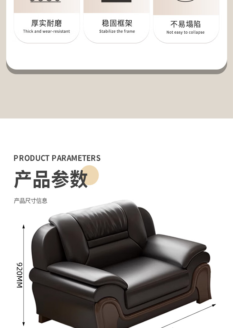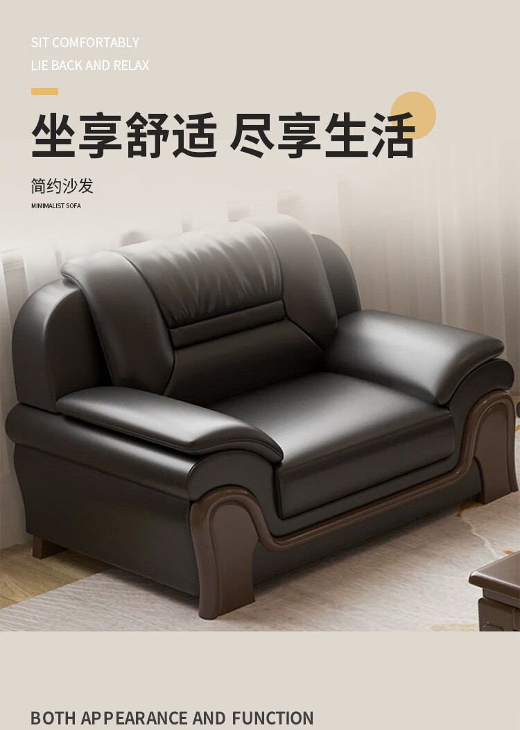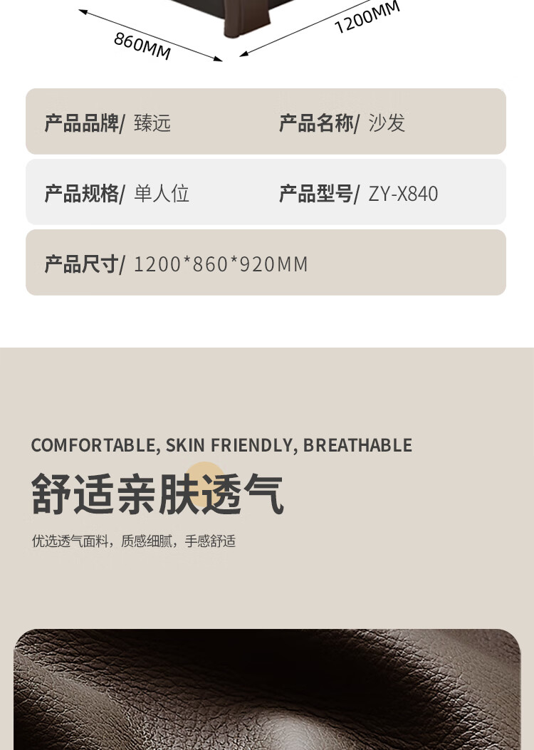 商品名称:臻远 ZY-X840 单人沙发 办公沙发单人位黑色牛皮1200*860*920mm