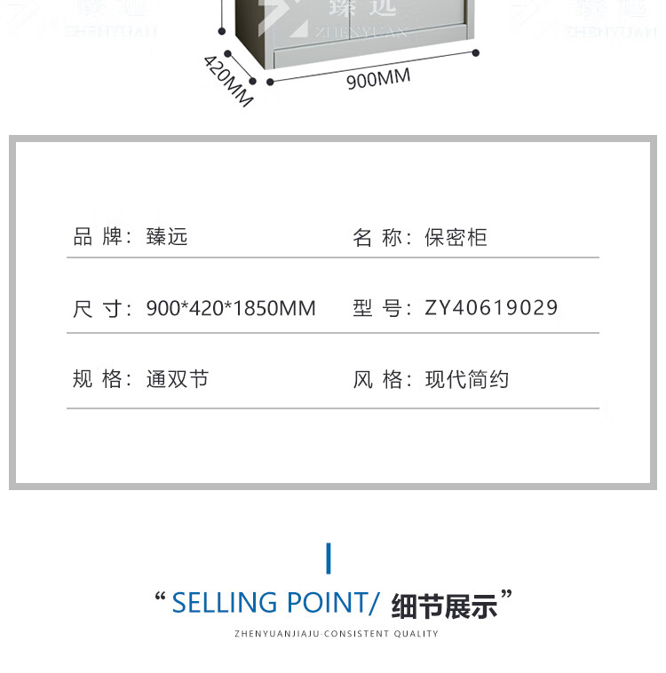 商品名称:臻远 ZY40619029 保密柜 人脸识别保险柜档案资料保密柜通双节900*420*1850mm
