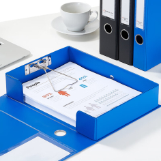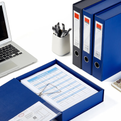 齐心(Comix)A1236 68mmA4磁扣式文件盒 加厚档案盒55mm容纸量资料盒财务票据收纳(带压纸夹) 蓝色