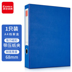 齐心(Comix)A8106 68mmA4磁扣式文件盒 加厚档案盒55mm容纸量资料盒财务票据收纳 侧压纸器 蓝色