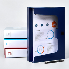 齐心(Comix) A8106 68mmA4磁扣式文件盒 加厚档案盒55mm容纸量资料盒财务票据收纳 侧压纸器 藏青