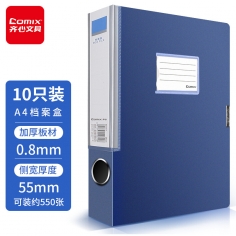 齐心(Comix)EA1018-10 10个装 55mm牢固耐用粘扣档案盒/A4文件盒/资料盒 蓝色