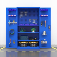 臻远 ZY-GJGA-9 重型五金工具柜双开门置物柜多功能零件柜 四层+门挂板+背挂板蓝色(送豪华配件一套)