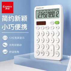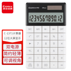 齐心(Comix)C-1371 双电源时尚计算器 轻薄机身平板按键桌面计算机 白色