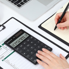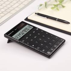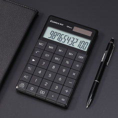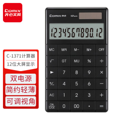 齐心(Comix)C-1371 双电源时尚计算器 轻薄机身平板按键桌面计算机 黑色