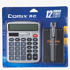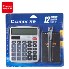 齐心(COMIX)KA-805 中台耐用金刚计算器商务套装(计算器+笔+记事本) 深灰色