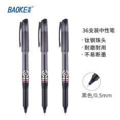宝克(BAOKE)PC1808 中性笔全针管0.5mm 学生水笔文具用品办公签字笔 黑色 36支/盒