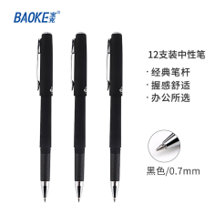 宝克(BAOKE)PC1888 黑色中性笔0.7mm办公签字笔水笔磨砂笔杆 12支/盒