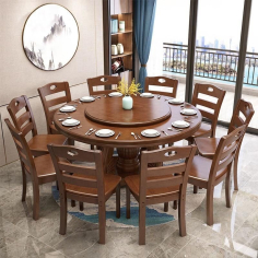 臻远 ZY3110417 餐桌 实木餐桌圆形餐桌椅组合1.5米圆桌10把餐椅