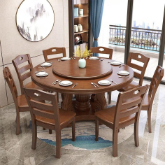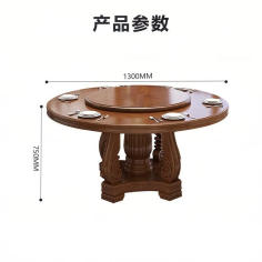 臻远 ZY3110416 餐桌 实木餐桌圆形餐桌椅组合1.3米圆桌8把餐椅