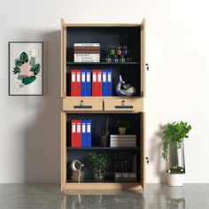 臻远 ZY-WJGC-96 钢制窄边文件柜拆装档案柜浅木纹中二斗900*400*1850mm