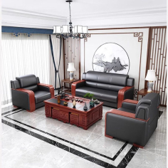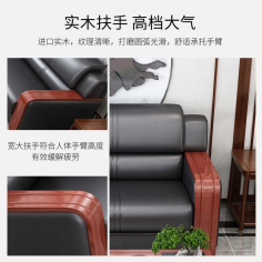 臻远 ZYJJ-80367 三人沙发 办公商务接待中式红木沙发黑色西皮单人位2000*850*880mm