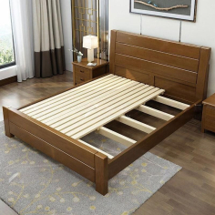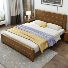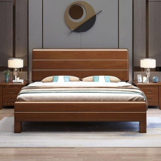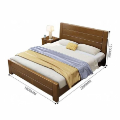 臻远 ZY4012006 木制床类 胡桃色实木床双人床宿舍公寓床1.8米床含1个床头柜1800*2200*1100mm
