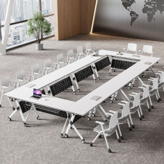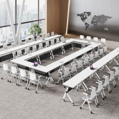 臻远 ZY-JX0905 教学、实验用桌 折叠可移动培训拼接桌暖白+钢档铝合金旋钮折叠1600W*600D*750H