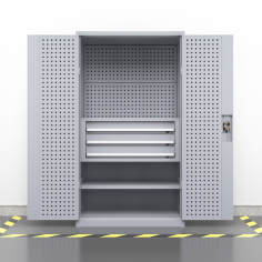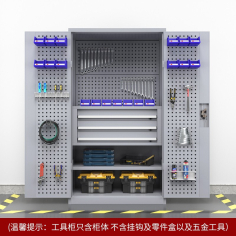 臻远 ZY-GJGA-22 重型五金工具柜双开门置物柜多功能零件柜 两层三抽+门挂板+背挂板灰白色