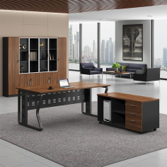 臻远 ZY-LBZ14 办公桌 大班桌行政桌现代主管桌2.4米含副柜橡木色2400*800*750mm