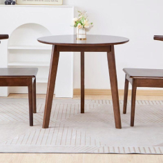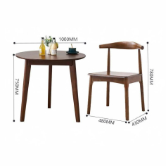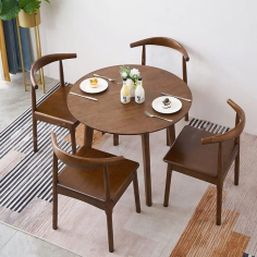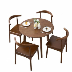 臻远 ZY3121618 餐桌 实木小圆桌简约圆形餐桌接待洽谈桌茶桌椅组合 胡桃色1米一桌四椅