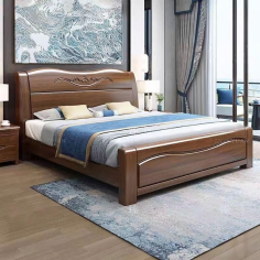 臻远 ZY4022918 木制床类 胡桃木实木床1.5米单人床含一个床头柜1500*2200*1000