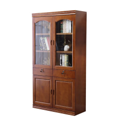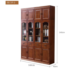臻远 ZY-ZGA-04 书柜 玻璃门实木新中式书橱落地靠墙四门加顶柜2.6米1600*450*2600mm