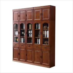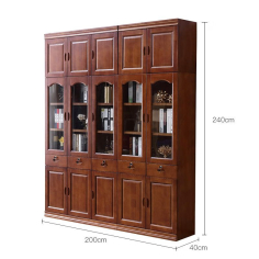 臻远 ZY-ZGA-05 书柜 玻璃门实木新中式书橱落地靠墙五门加顶柜2.6米2000*450*2600mm