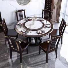 臻远 ZY3110408 餐桌 岩板餐桌实木圆形餐桌椅组合1.2米圆桌6把餐椅