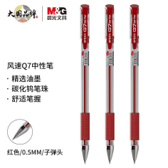 晨光(M&G)Q7 中性笔 0.5mm红色中性笔 子弹头签字笔 拔盖水笔12支/盒 书写用笔类用具