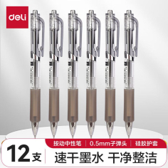 得力/deli S801 速干中性笔 0.5mm子弹头签字笔按动笔水笔 书写用笔类用具